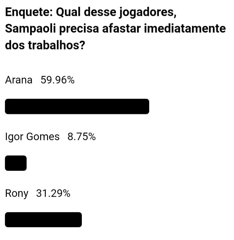 Mesmo após o gol e uma atuação segura, a maioria dos torcedores nessa enquete, acham que Guilherme Arana precisa ser afastado dos trabalhos. Será mesmo? Resultado surpreendente, especialmente depois de uma vitória.